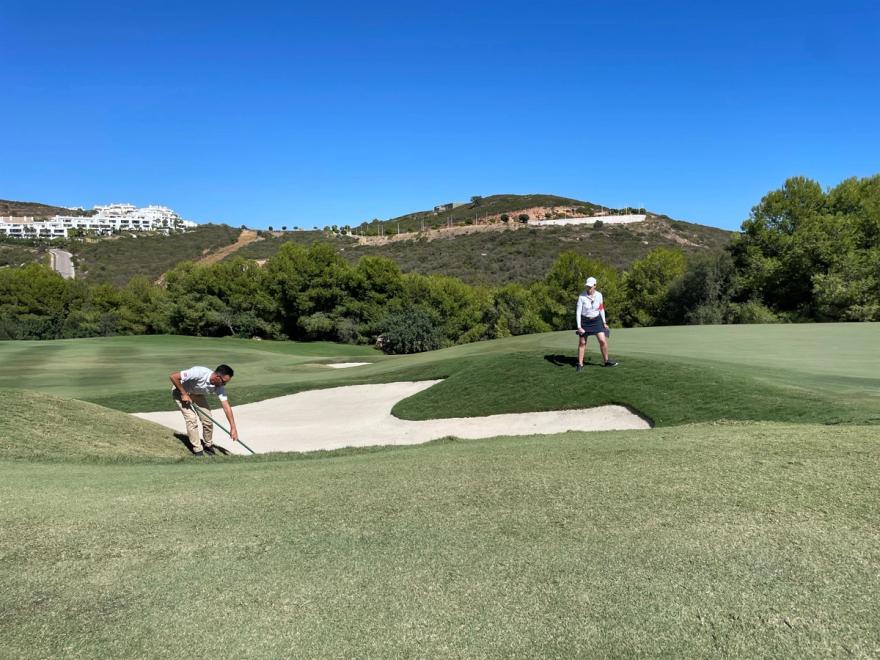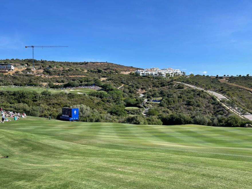 I spent the majority of Sunday afternoon posted up above the front right bunker on number 15 at Finca Cortesin, a difficult par 4 that brought matches back from the hinterlands of the golf course. This spot allowed me to watch players strike a distant tee shot over a massive ravine and then hit long irons into an elevated green with trouble left and bunkers right.