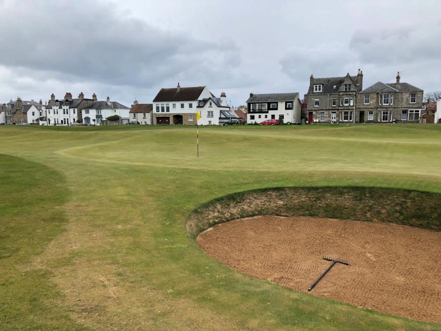 The 4th Green, with the village of Elie beyond. Photograph by Jim Hartsell