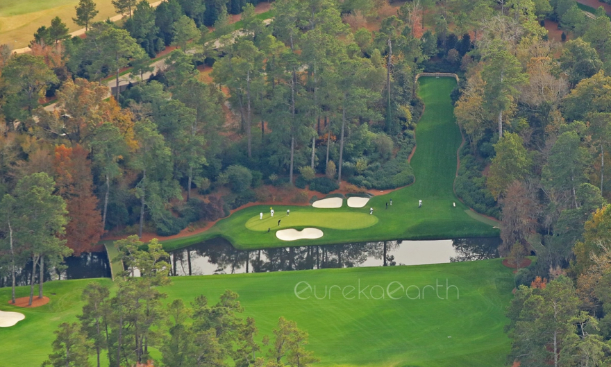 An aerial view of the lengthened 13th hole at Augusta National.