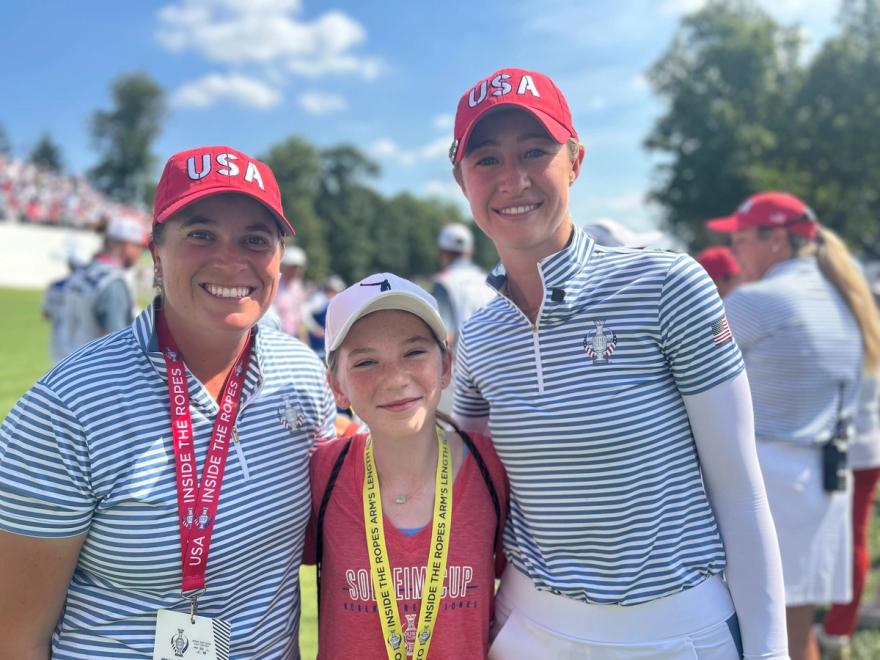 It’s still a surreal thing to say out loud: Not only do I have a 12-year-old daughter who loves golf, who will jump out of bed at 6 a.m. and drive to another state with me so we can watch a tournament together, but we’re also lucky enough to know someone on the Solheim Cup team, someone who greeted us with a hug on the first tee and immediately started introducing us to her teammates.